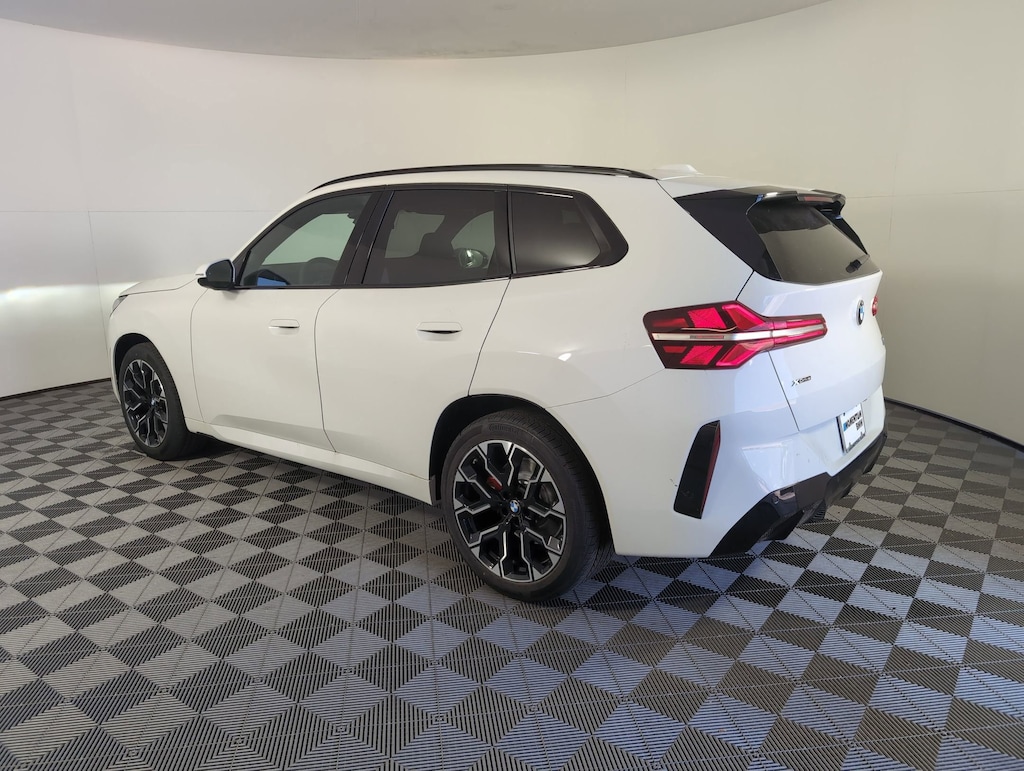 WHEELS: 20" X 9" FR & 20" X 10.5" RR M JET BLACK -inc: Style 1036M, Bicolor, Tires: 255/45R20 Fr & 285/40R20 Rr AS, Staggered, PREMIUM PACKAGE -inc: Remote Engine Start, BMW Curved Display w/HUD, Heated Steering Wheel, Sky Lounge Panoramic Roof, Interior Camera, ACC Stop & Go + Active Driving Assistant, Allows for hands-on assisted driving mode up 110MPH on all streets and speed limit assistant, Premium Content 1, Travel & Comfort System, Parking Assistant Plus, a camera and ultrasound-based assistance system consisting of Surround View system and remote 3D view, PARKING ASSISTANCE PACKAGE -inc: Parking Assistant Professional, a camera and ultrasound-based assistance system consisting of Surround View system and remote 3D view, Remote Control Parking and maneuver and reversing assistant professional, M SPORT PACKAGE -inc: Shadowline Exterior Trim, M Steering Wheel, M Sport Exterior Elements, M Sport Content, M Sport Package (337), M Sport Interior Elements, Variable Sport Steering, M Fine Brushed Aluminum Interior Trim, M Sport Suspension, Wheels: 19" x 8.5" M Midnight Grey Bicolor, Style 1035M, M FINE BRUSHED ALUMINUM INTERIOR TRIM, HEATED STEERING WHEEL, FRONT VENTILATED SEATS, BMW ICONIC GLOW KIDNEY GRILLE, BLACK, VEGANZA PERFORATED & QUILTED UPHOLSTERY, ALPINE WHITE. This BMW X3 has a strong 2.0 Liter 4 Cylinder Engine, 255 HP engine powering this Automatic transmission.