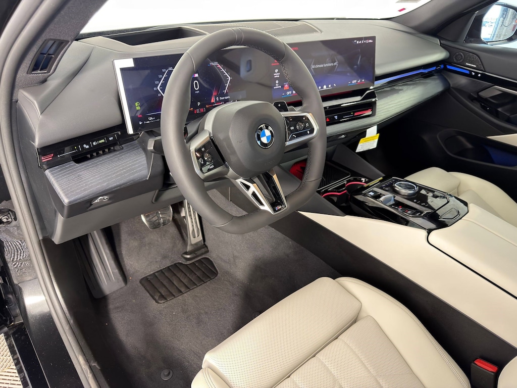 WHEELS: 21" X 8.5" FR & 21" X 9.5" RR INDIVIDUAL -inc: Style 954i, Aero bicolor, Tires: 255/35R21 Front & 285/30R21 Rear Summer, Staggered, Increased Top Speed Limiter, SMOKE WHITE, PERFORATED & QUILTED VEGANZA UPHOLSTERY, REMOTE ENGINE START, PREMIUM PACKAGE -inc: Remote Engine Start, BMW Curved Display w/HUD, Parking View w/3D View (Surround View), Heated Steering Wheel, Interior Camera, Premium Content 1, Parking Assistant Plus, M SPORT PROFESSIONAL PACKAGE -inc: launch control and expert mode, M Sport Package Pro, Extended Shadowline Trim, Rear Spoiler, M Sport Pro Contents, M Sport Brakes w/Red Calipers, M Shadowline Lights, BMW Iconic Glow Kidney Grille, M SPORT PACKAGE -inc: Shadowline Exterior Trim, M Steering Wheel, M Sport Exterior Elements, M Sport Content, M Sport Pkg, M Sport Brakes w/Blue Calipers, M Sport Interior Elements, M Sport Suspension, Wheels: 19" x 8.5" M Dual-Spoke Bicolor Black, Style 935M, HEATED STEERING WHEEL, FINE WOOD GREY BLUE OPEN PORE ASH TRIM -inc: dark silver accent, BMW ICONIC GLOW KIDNEY GRILLE, BLACK SAPPHIRE METALLIC. This BMW 5 Series has a powerful 2.0 Liter 4 Cylinder Engine, 255 HP engine powering this Automatic transmission.