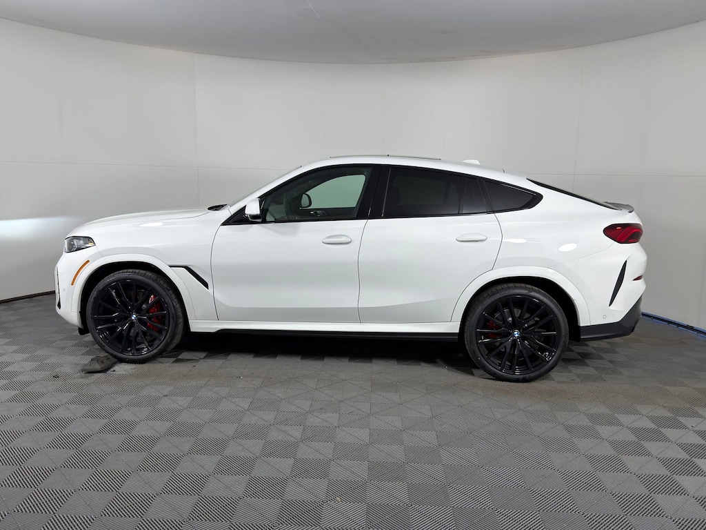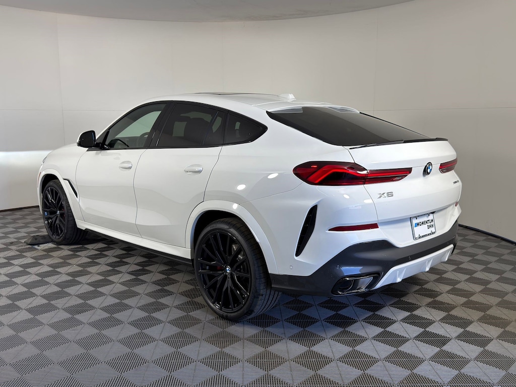 WHEELS: 22" M DUAL-SPOKE BLACK (STYLE 742M) -inc: 22" x 9.5" front and 22" x 10.5" rear, Tires: 275/35R22 Fr & 315/30R22 Rr Summer, Staggered, Space-Saver Spare, Increased Top Speed Limiter, TACORA RED, SENSAFIN UPHOLSTERY -inc: decor stitching, SPACE-SAVER SPARE, REMOTE ENGINE START, REAR MANUAL SIDE WINDOW SHADES, PARKING ASSISTANCE PACKAGE -inc: Automatic Park Assistant, Active Park Distance Control, Backup Assistant, Parking View w/3D View (Surround View), Rear View Camera, Parking Assistant Professional, Trailer Assistant, MULTI-CONTOUR SEATS, M SPORT PROFESSIONAL PACKAGE -inc: M Sport Package Pro, Extended Shadowline Trim, M Sport Exhaust System, M Sport Brakes w/Red Calipers, M Shadowline Lights, Illuminated Kidney Grille, LIVE COCKPIT PRO -inc: navigation, ILLUMINATED KIDNEY GRILLE. This BMW X6 has a strong 3.0 Liter Straight 6 Cylinder Engine, 375 HP engine powering this Automatic transmission.