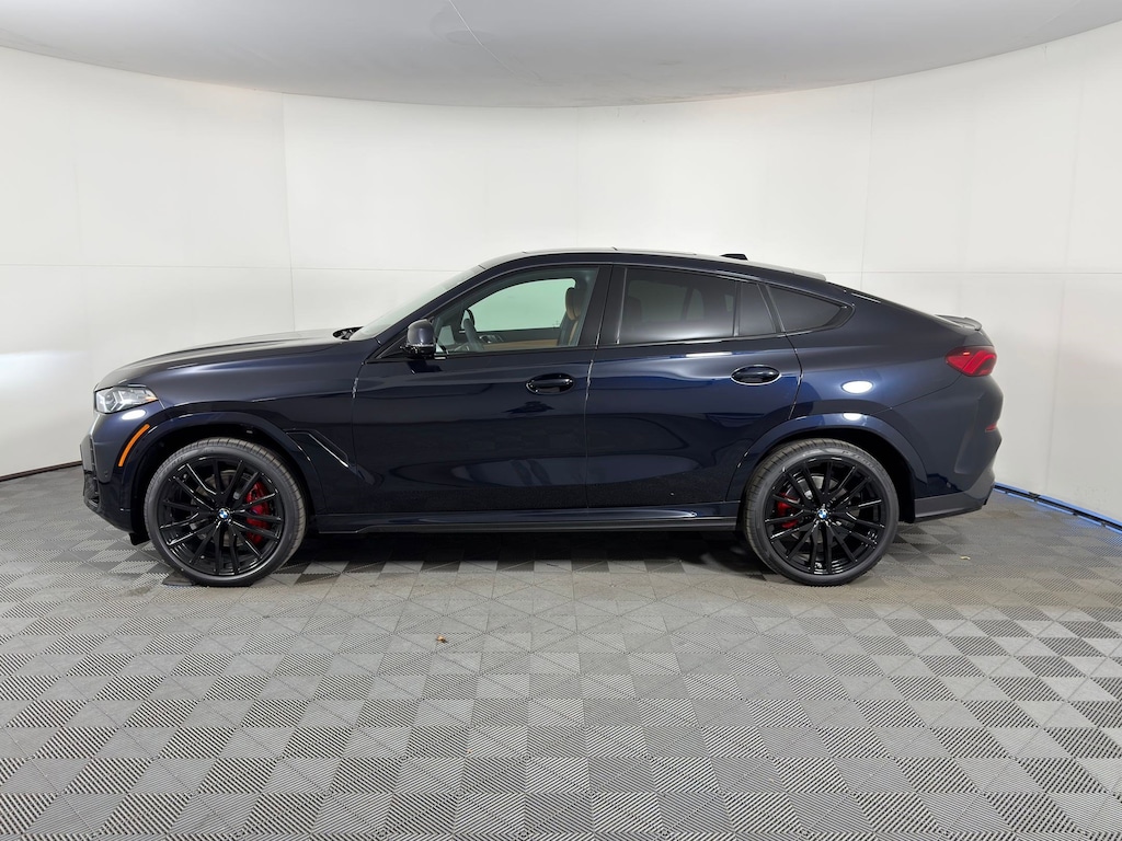 WHEELS: 22" M DUAL-SPOKE BLACK (STYLE 742M) -inc: 22" x 9.5" front and 22" x 10.5" rear, Tires: 275/35R22 Fr & 315/30R22 Rr Summer, Staggered, Space-Saver Spare, Increased Top Speed Limiter, REMOTE ENGINE START, REAR MANUAL SIDE WINDOW SHADES, PARKING ASSISTANCE PACKAGE -inc: Automatic Park Assistant, Active Park Distance Control, Backup Assistant, Parking View w/3D View (Surround View), Rear View Camera, Parking Assistant Professional, Trailer Assistant, MULTI-CONTOUR SEATS, M SPORT PROFESSIONAL PACKAGE -inc: M Sport Package Pro, Extended Shadowline Trim, M Sport Exhaust System, M Sport Brakes w/Red Calipers, M Shadowline Lights, Illuminated Kidney Grille, LIVE COCKPIT PRO -inc: navigation, ILLUMINATED KIDNEY GRILLE, HEATED FRONT SEATS W/ARMRESTS & STEERING WHEEL, HARMAN/KARDON SURROUND SOUND SYSTEM. This BMW X6 has a powerful 3.0 Liter Straight 6 Cylinder Engine, 375 HP engine powering this Automatic transmission.