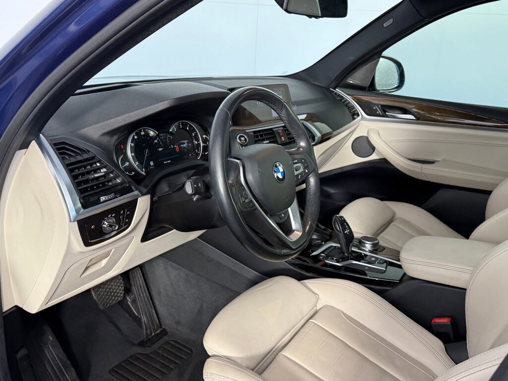 WIRELESS CHARGING -inc: Enhanced USB & Bluetooth, WiFi Hotspot, WHEELS: 19" X 7.5" V SPOKE (STYLE 692) -inc: Space-Saver Spare, Tires: 245/50R19 All-Season Non Run-Flat, PREMIUM PACKAGE -inc: Head-Up Display, Heated Steering Wheel, Wheels: 19" x 7.5" V-Spoke (Style 692), Tires: 245/50R19 All-Season Run-Flat, Heated Front Seats, Navigation System, Advanced Real-Time Traffic Information, Apple CarPlay Compatibility, 1 year trial, Remote Services, PHYTONIC BLUE METALLIC, PARKING ASSISTANCE PACKAGE -inc: Active Park Distance Control, Surround View w/3D View, Rear View Camera, Parking Assistant Plus, PANORAMIC MOONROOF, OYSTER W/CONTRAST, VERNASCA LEATHER UPHOLSTERY -inc: Ambient Lighting, NAVIGATION SYSTEM -inc: Advanced Real-Time Traffic Information, Apple CarPlay Compatibility, 1 year trial, Remote Services, HEATED STEERING WHEEL, HEATED FRONT SEATS. This BMW X3 has a dependable Intercooled Turbo Premium Unleaded I-4 2.0 L/122 engine powering this Automatic transmission.